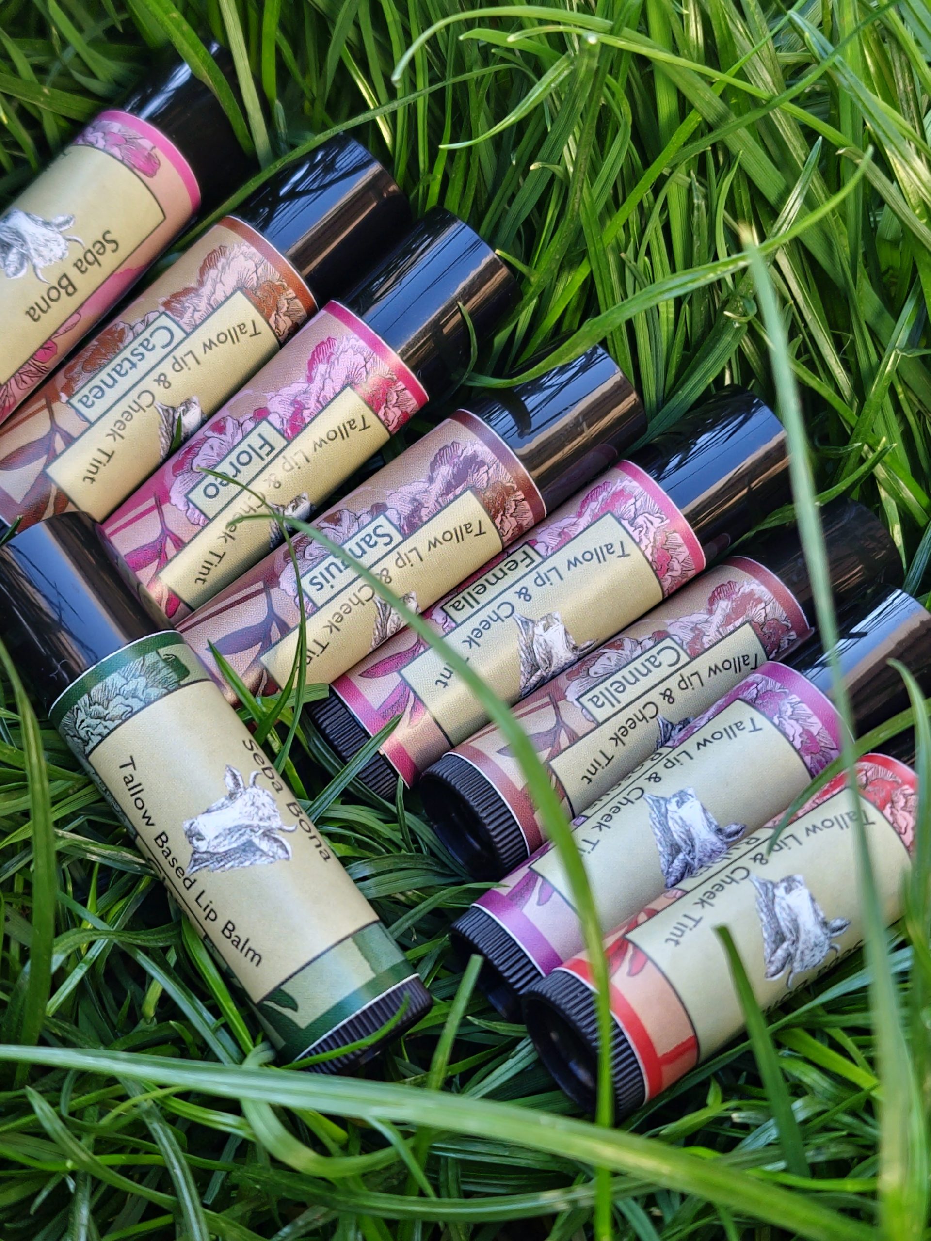 Tallow based lip and cheek tints. Better than your average lip balm, Seba Bona’s lip and cheek tints are made with our amazing Organic Grass Fed and Finished Beef Tallow with the added benefits of Organic Unrefined Raw Shea Butter, Emu Oil, and Beeswax. Our lip and cheek tints are hydrating, soothing, and nourishing all while softening your lips for a beautiful tinted pout! These are buildable tints. From a sheer barely there wash of color to a more opaque concentration, our tints have you covered. Enjoy mixing them together to create your own unique blend.