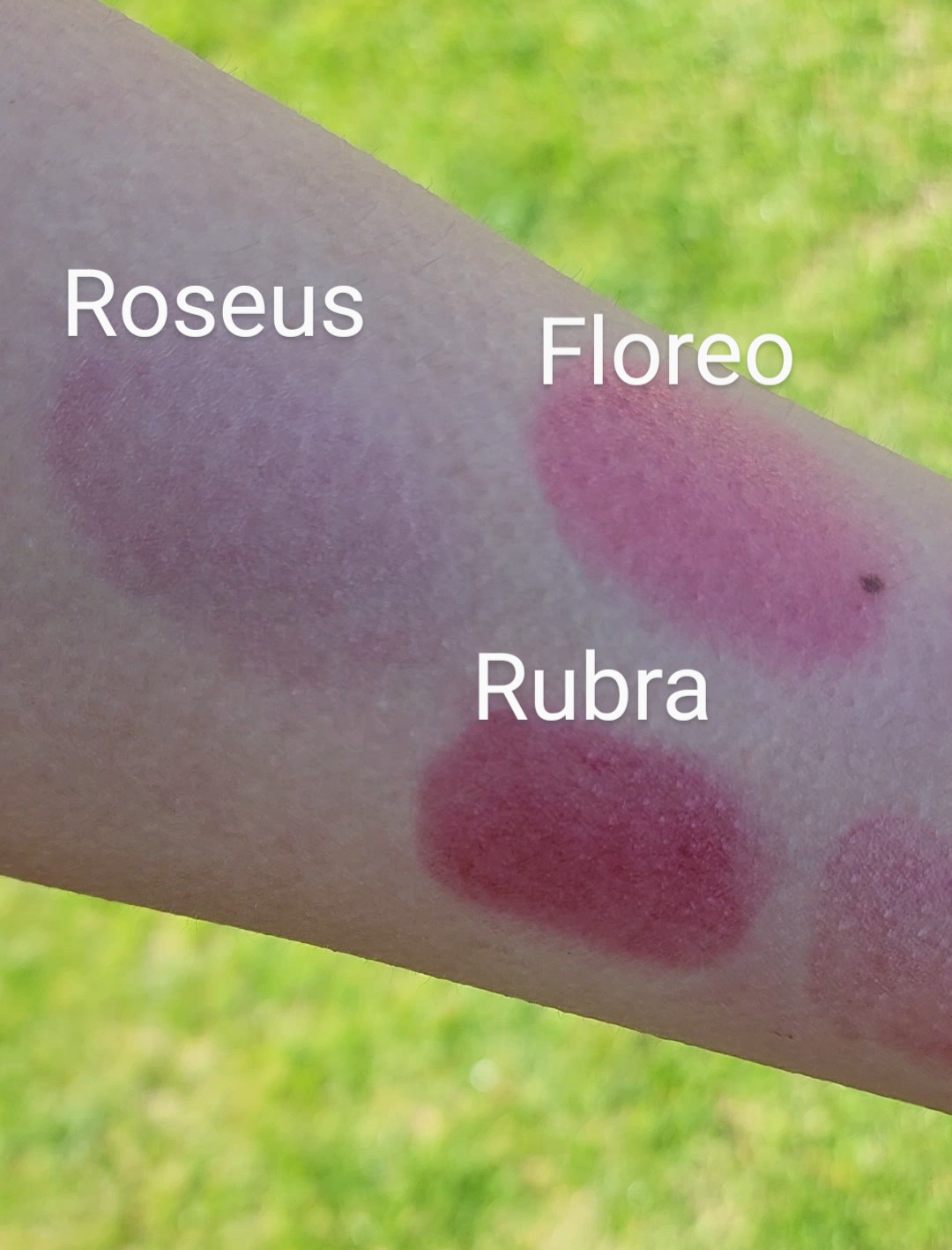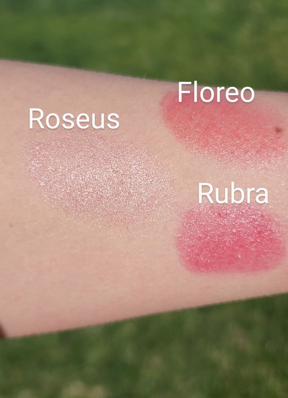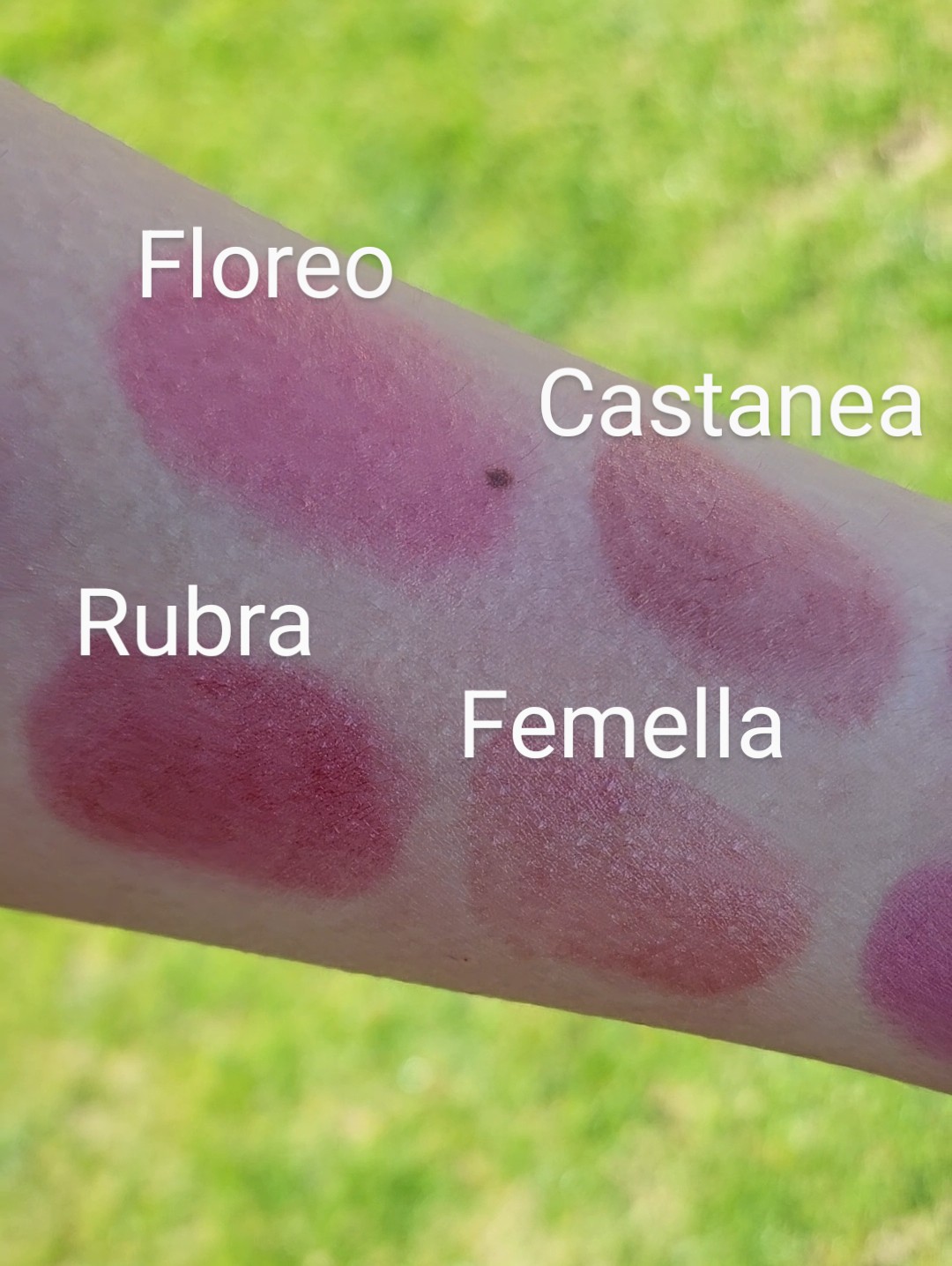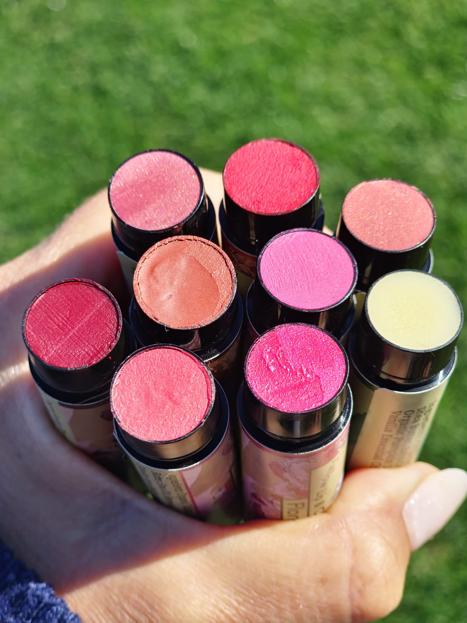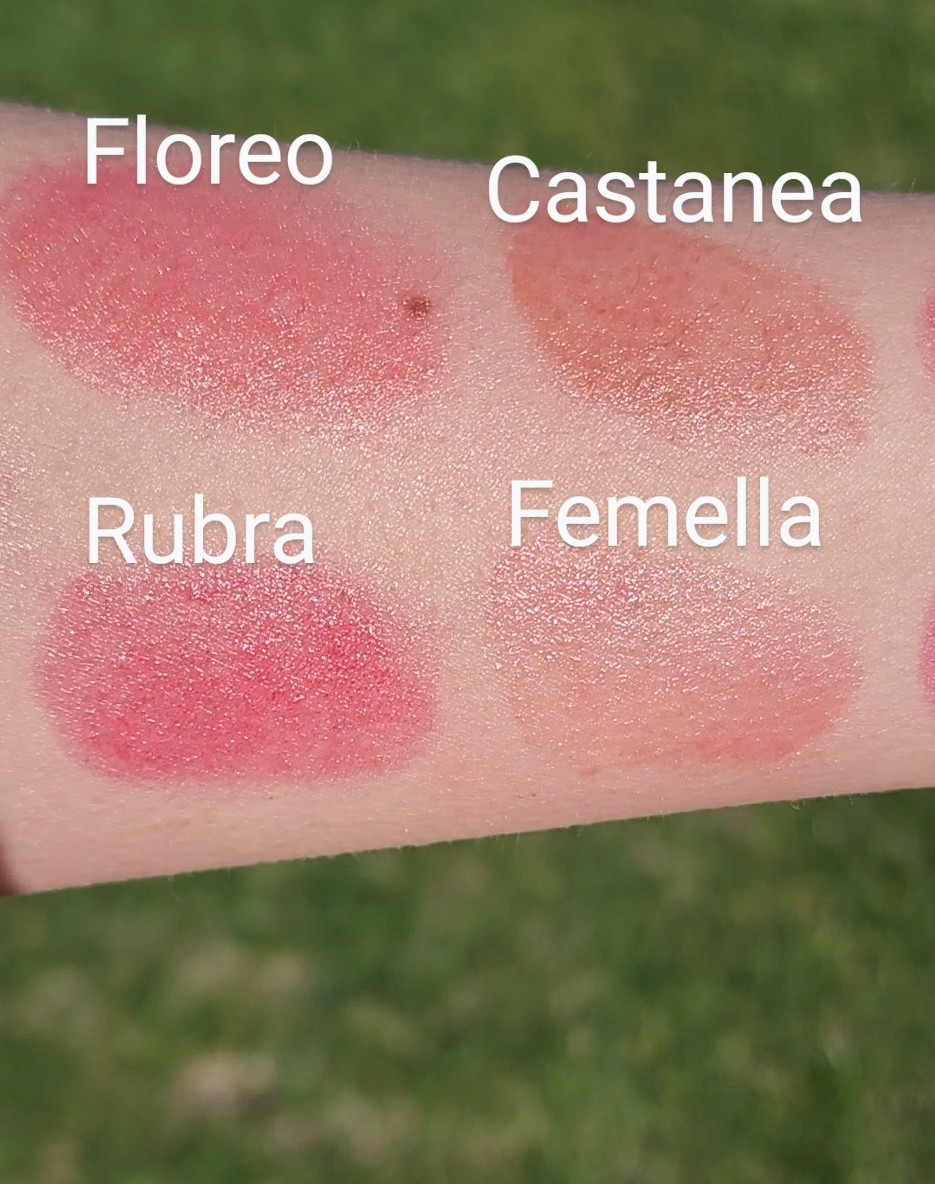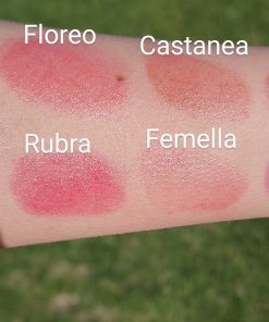 Floreo (Latin for Flower): Organic Shea Butter, Emu Oil, Beeswax, Mica, Titanium Dioxide, Iron Oxide