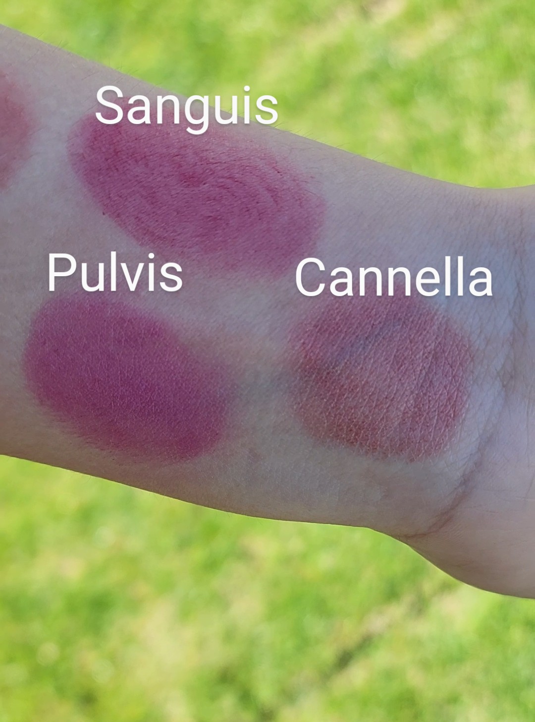Sanguis (Latin for Blood): Organic Tallow, Organic Shea Butter, Emu Oil, Beeswax, Mica, Carmine